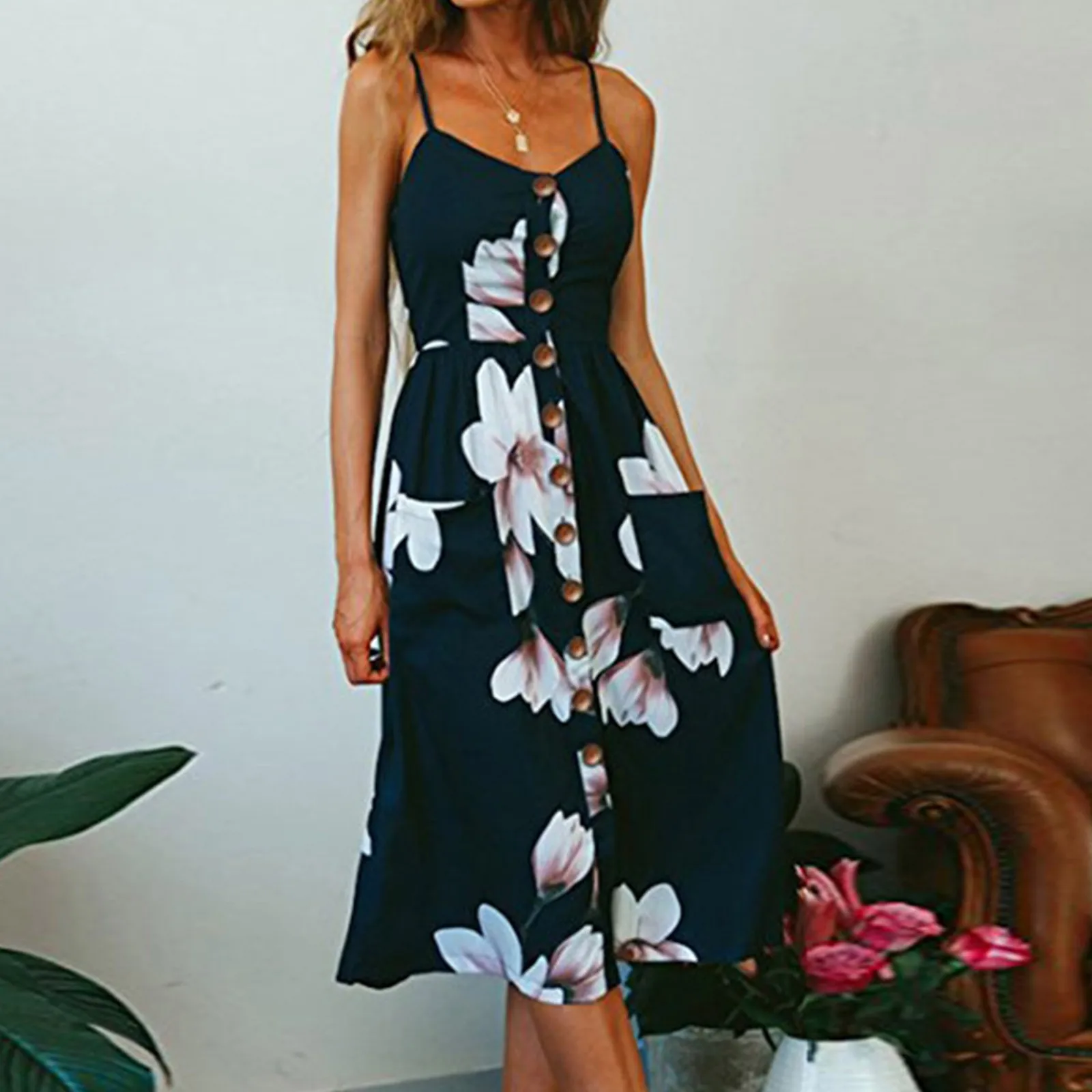 Hawaii Floral Midi Dress: Summer Beachwear Sequins
