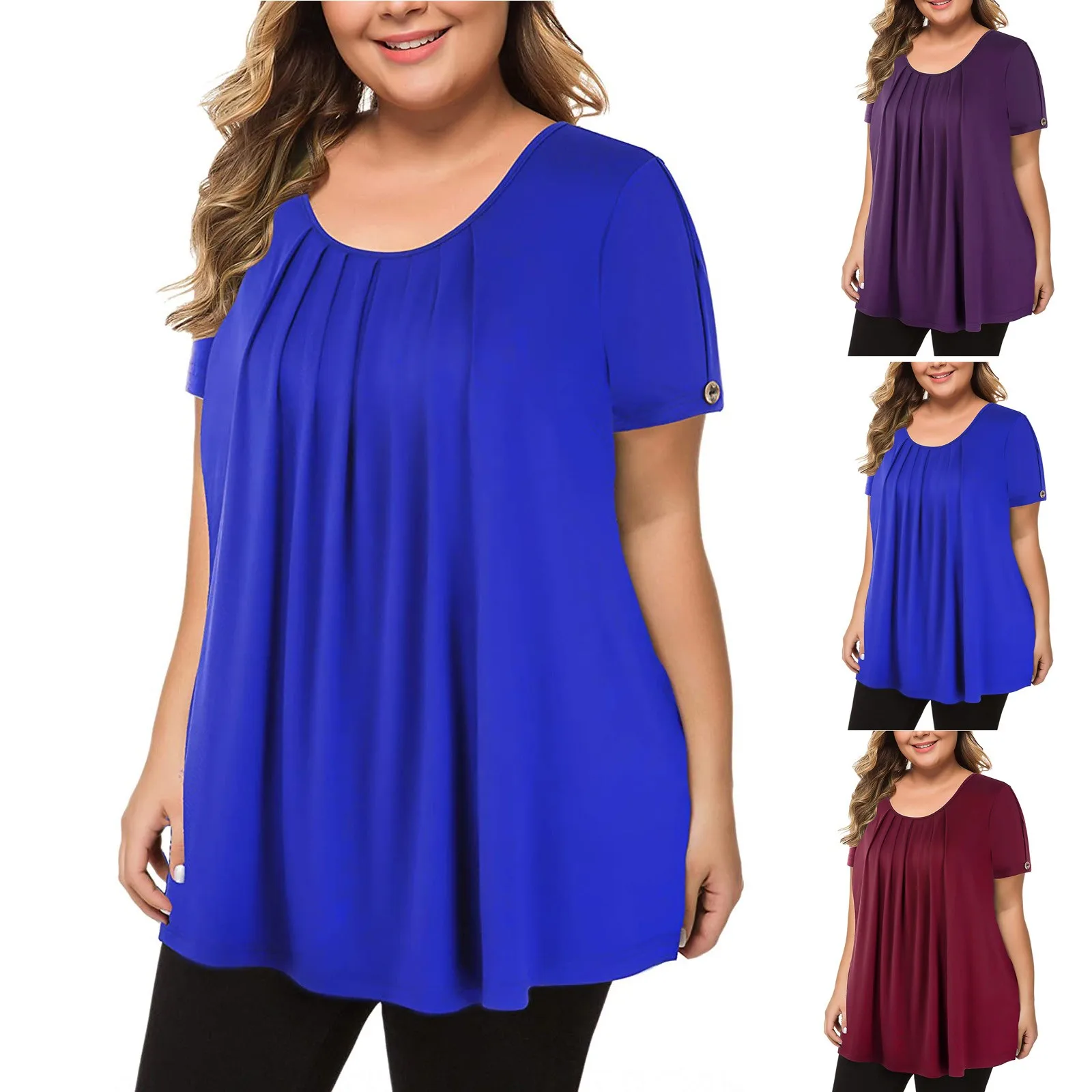 Plus Size Pleated Blouse – Casual Summer Short Sleeve Top