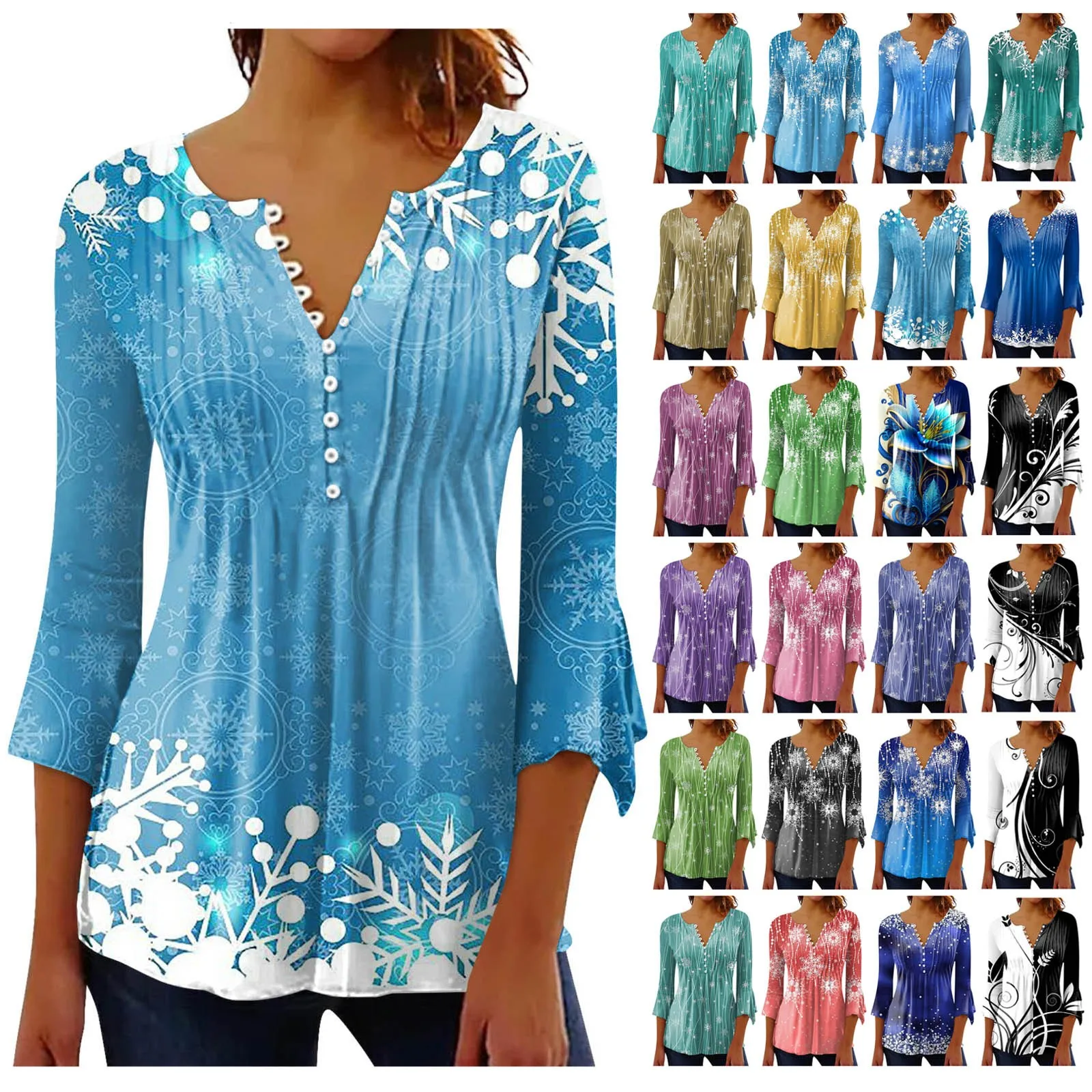 2023 Floral Print Button Up Blouse – Three Quarter Sleeve