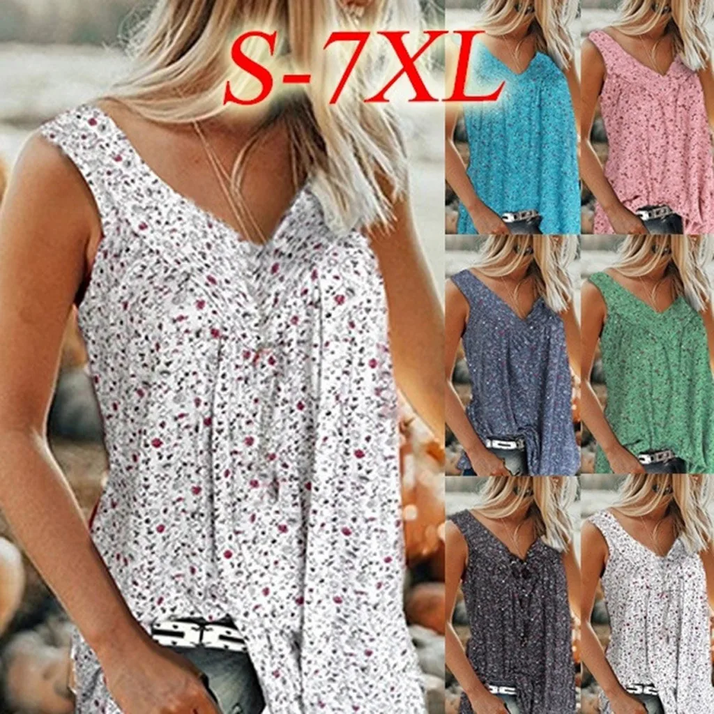 Summer Flower Print Sleeveless Blouse – Casual V Collar
