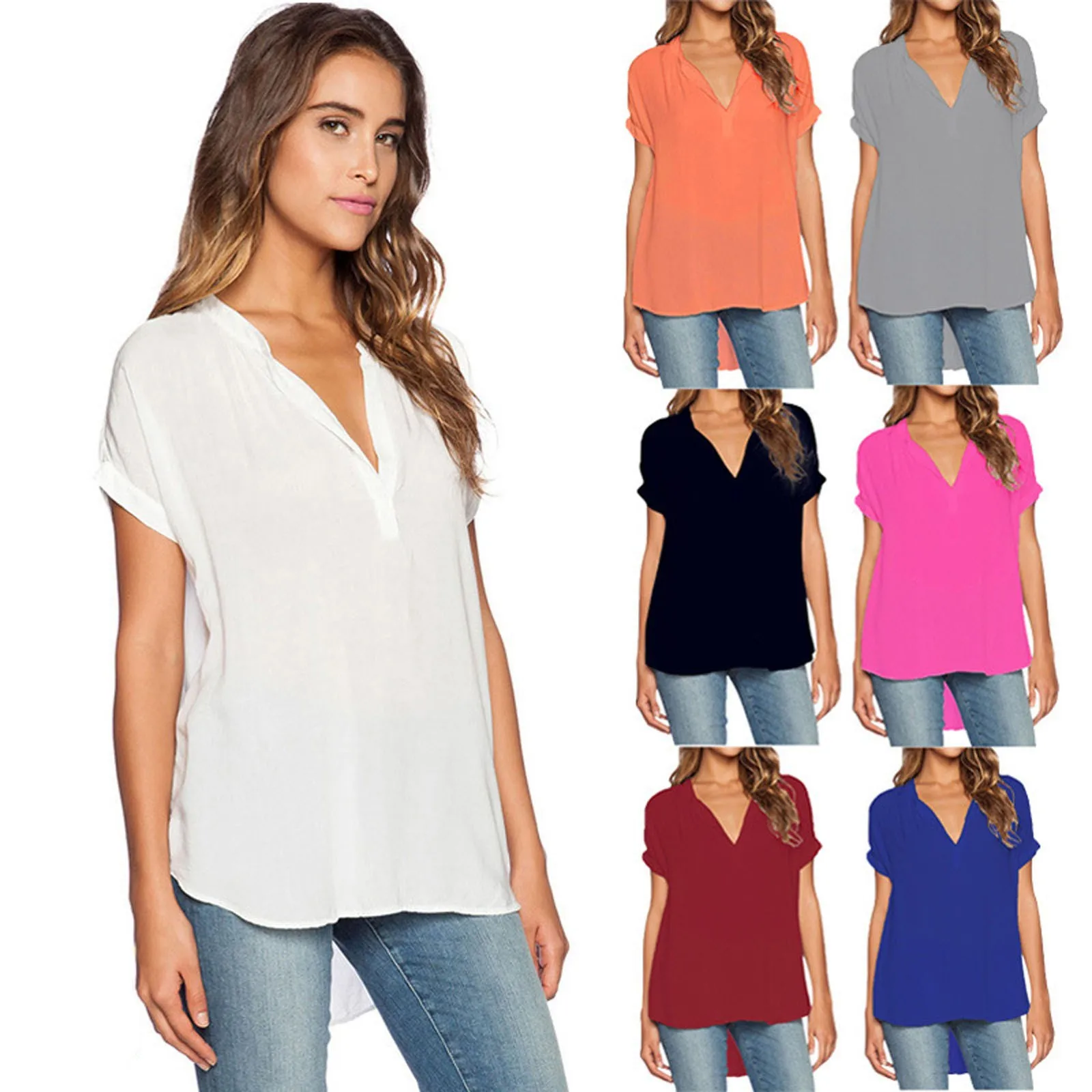Summer Zipper V Neck Blouse – Fashion Solid Color Tops
