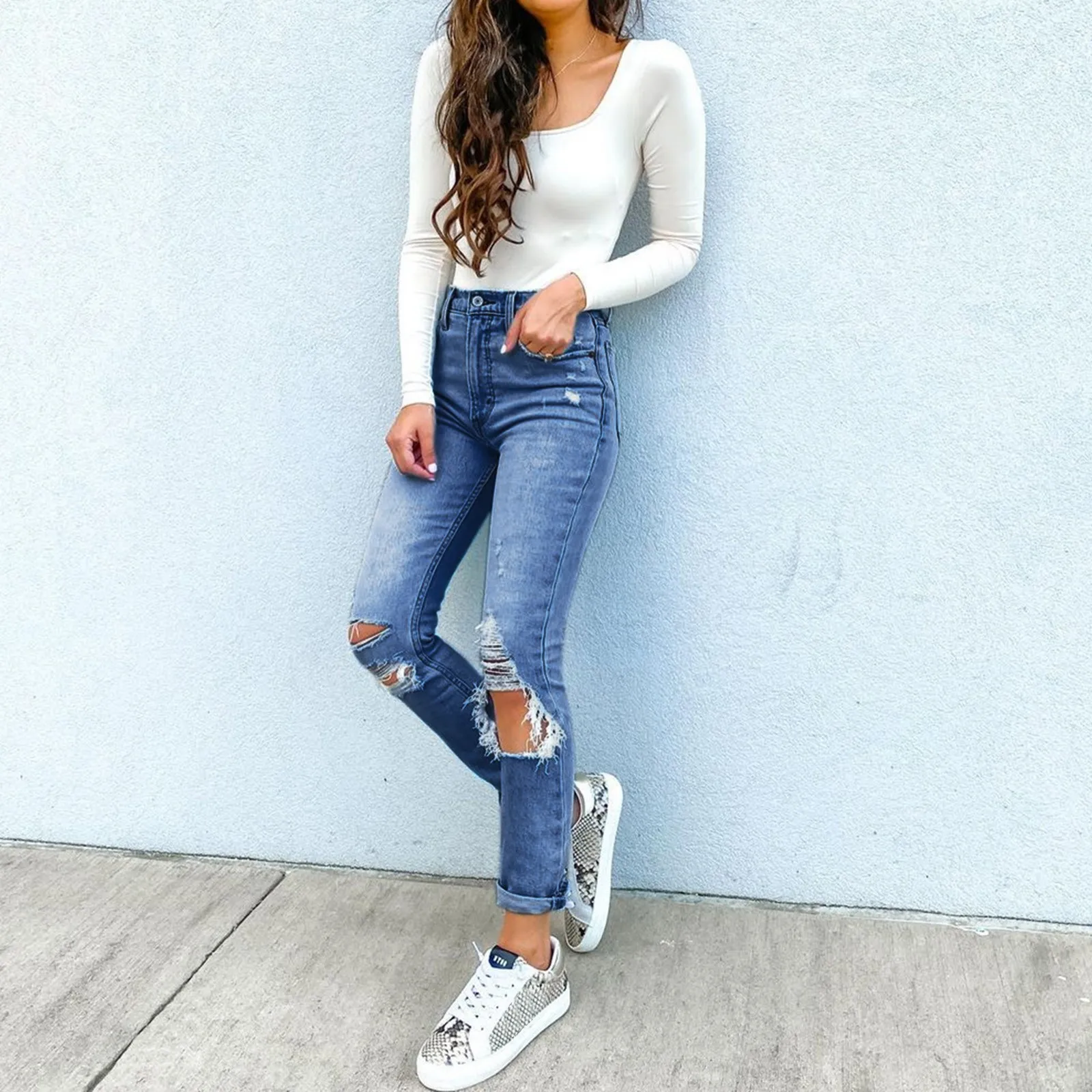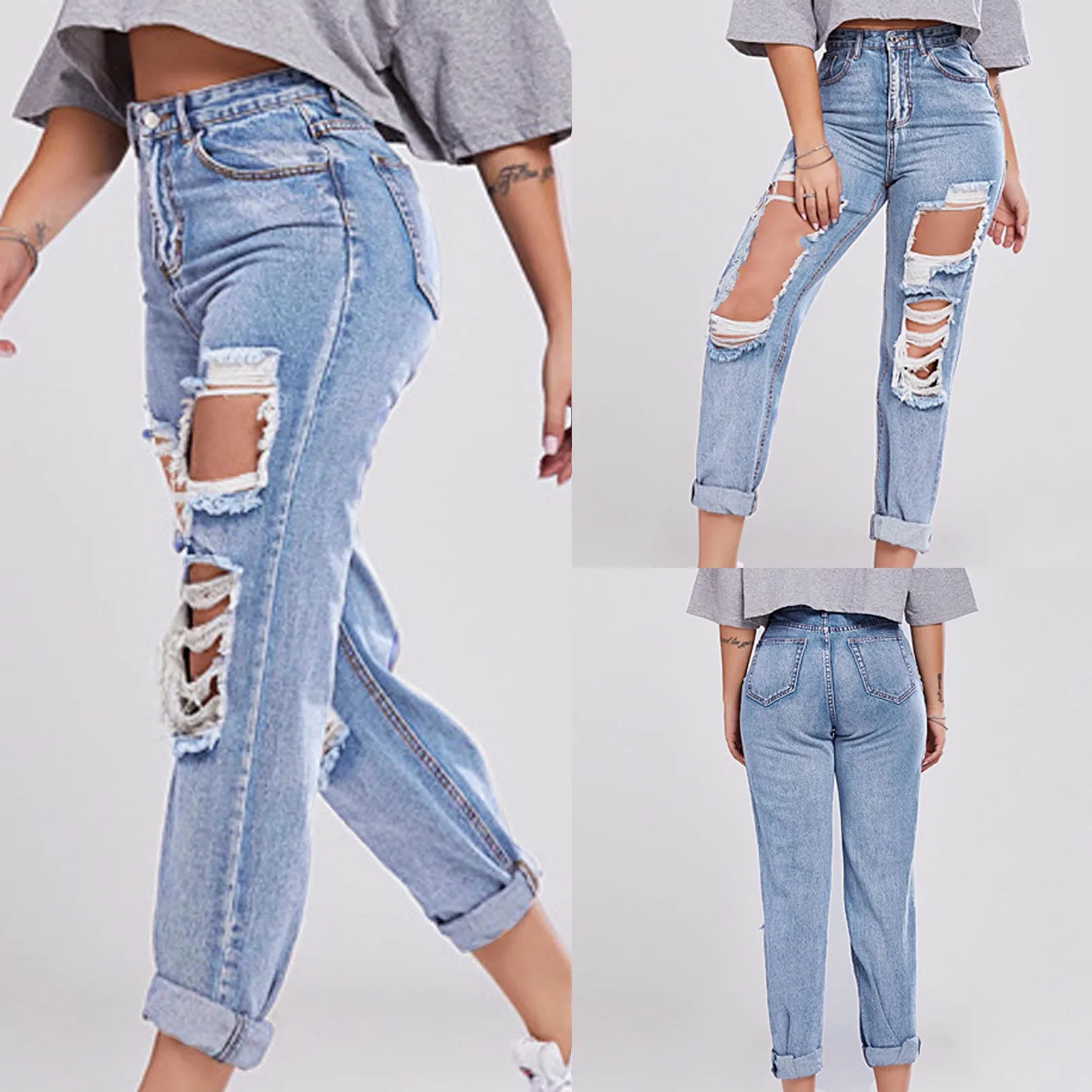 2023 High Waist Ripped Baggy Jeans: Streetwear Slim-Fit