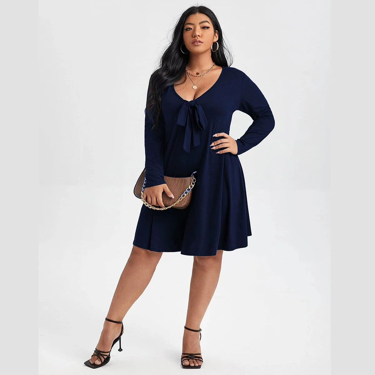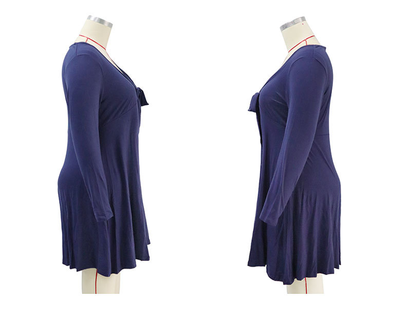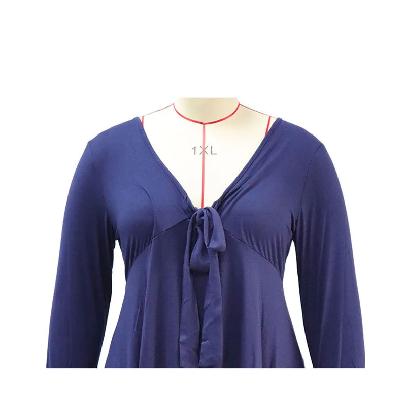2022 Plus Size V-Neck Bow Tie Dress: Comfortable Autumn Wear