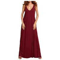 Women’s Casual Solid V-neck Backless Loose Big Swing Dress Long Sleeveless Dress