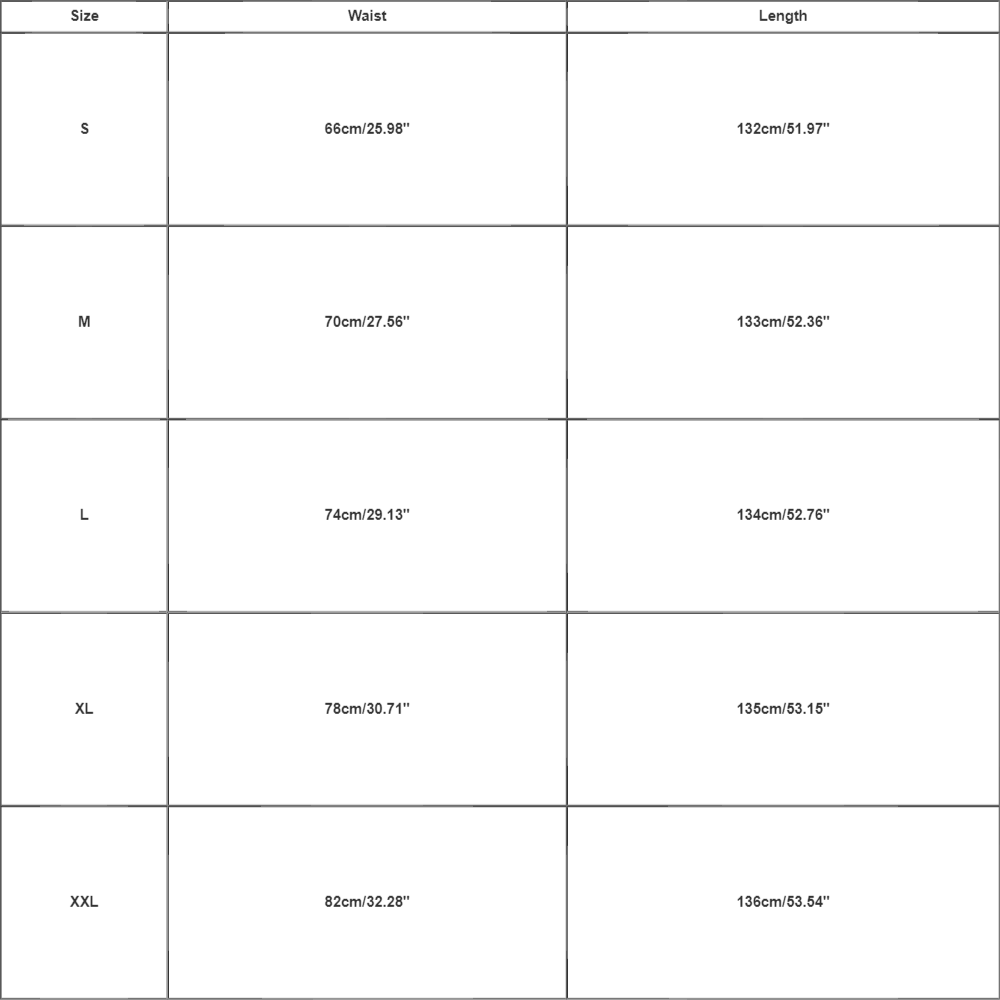 Size:XXL Waist:82cm/32.28” Length:136cm/53.54”