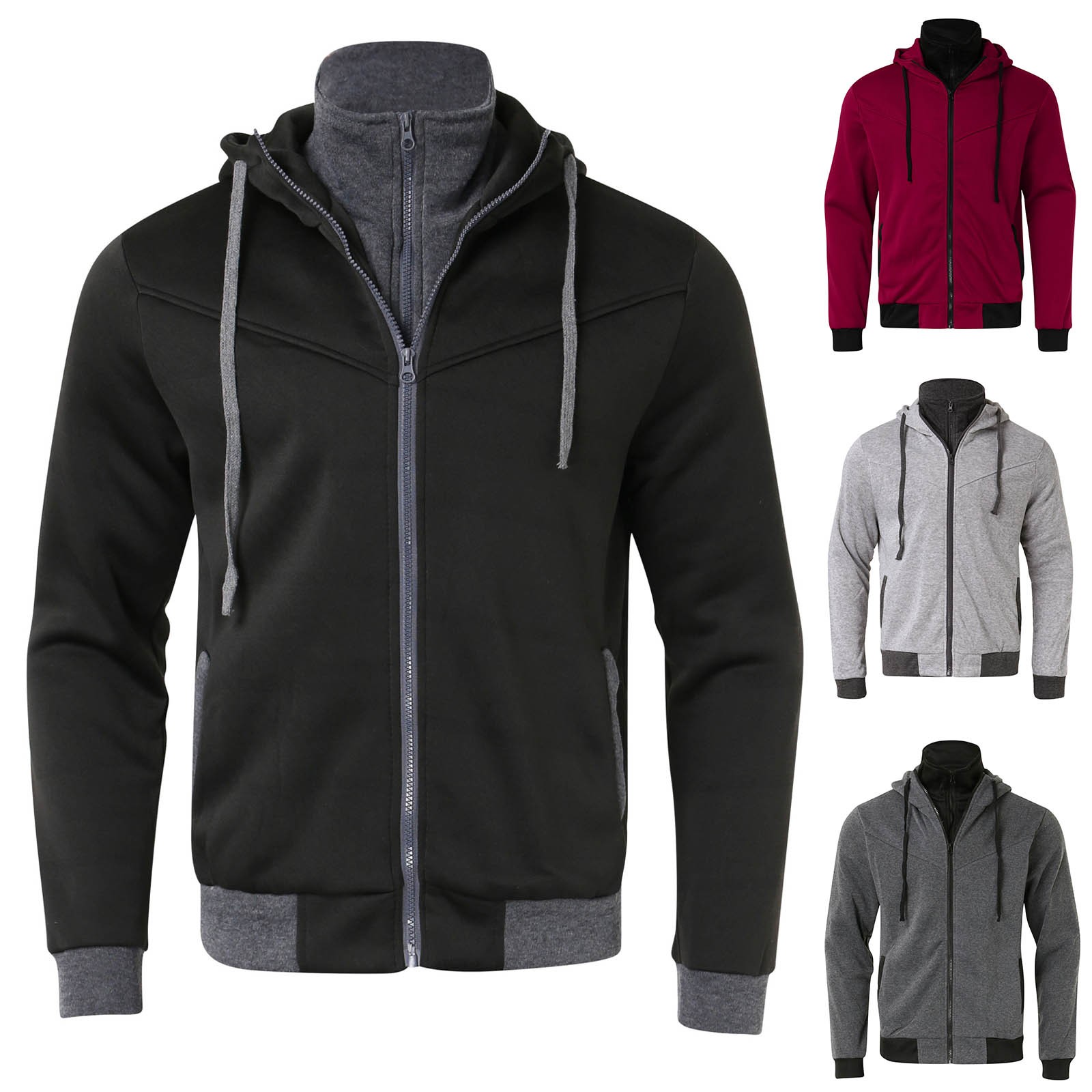 Mens Autumn And Winter Long Sleeved Hoodie Fashion Casual Slim Fit Color Hooded Cardigan Hoodie Coat