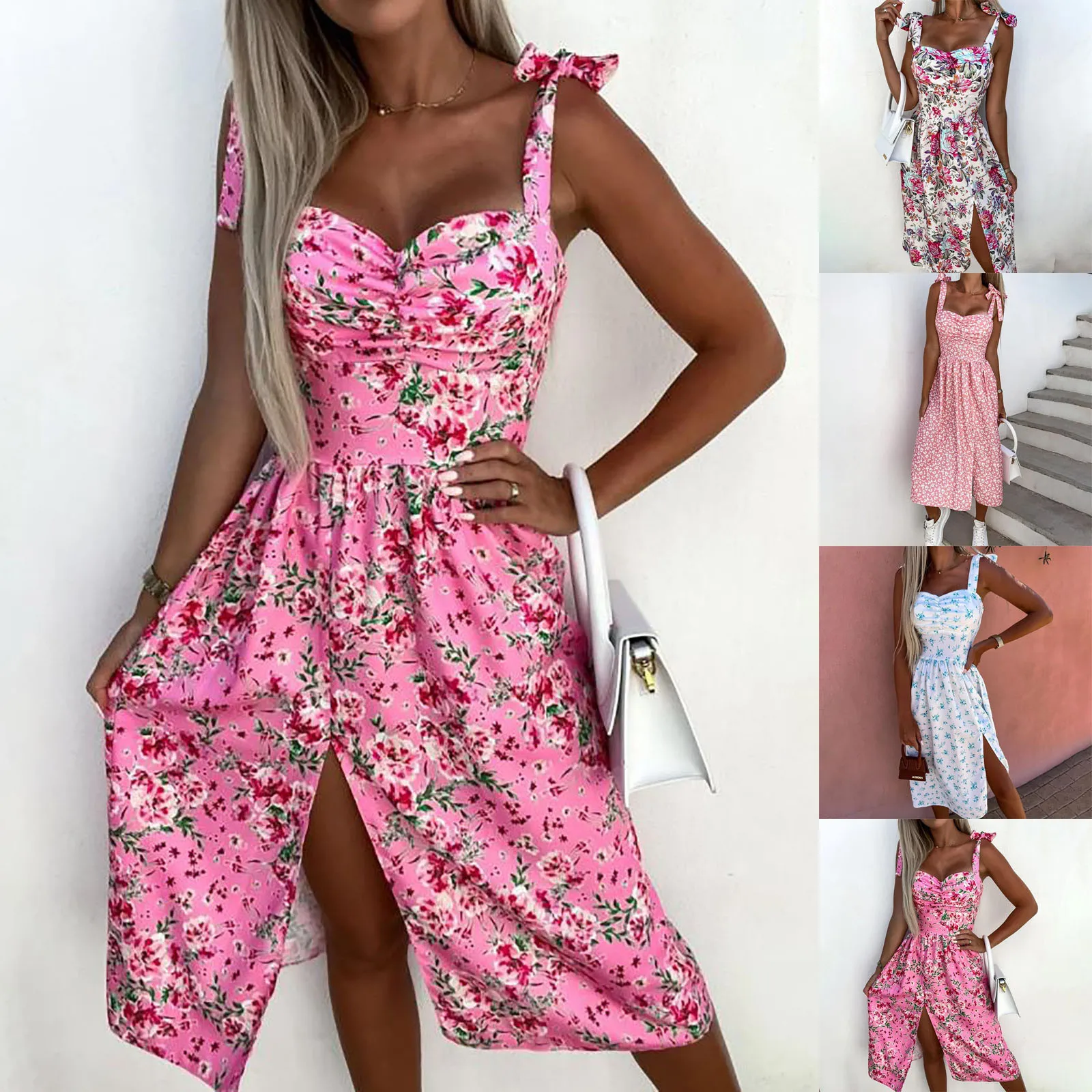 Floral Sleeveless Beach Party Slit Dress: Sexy