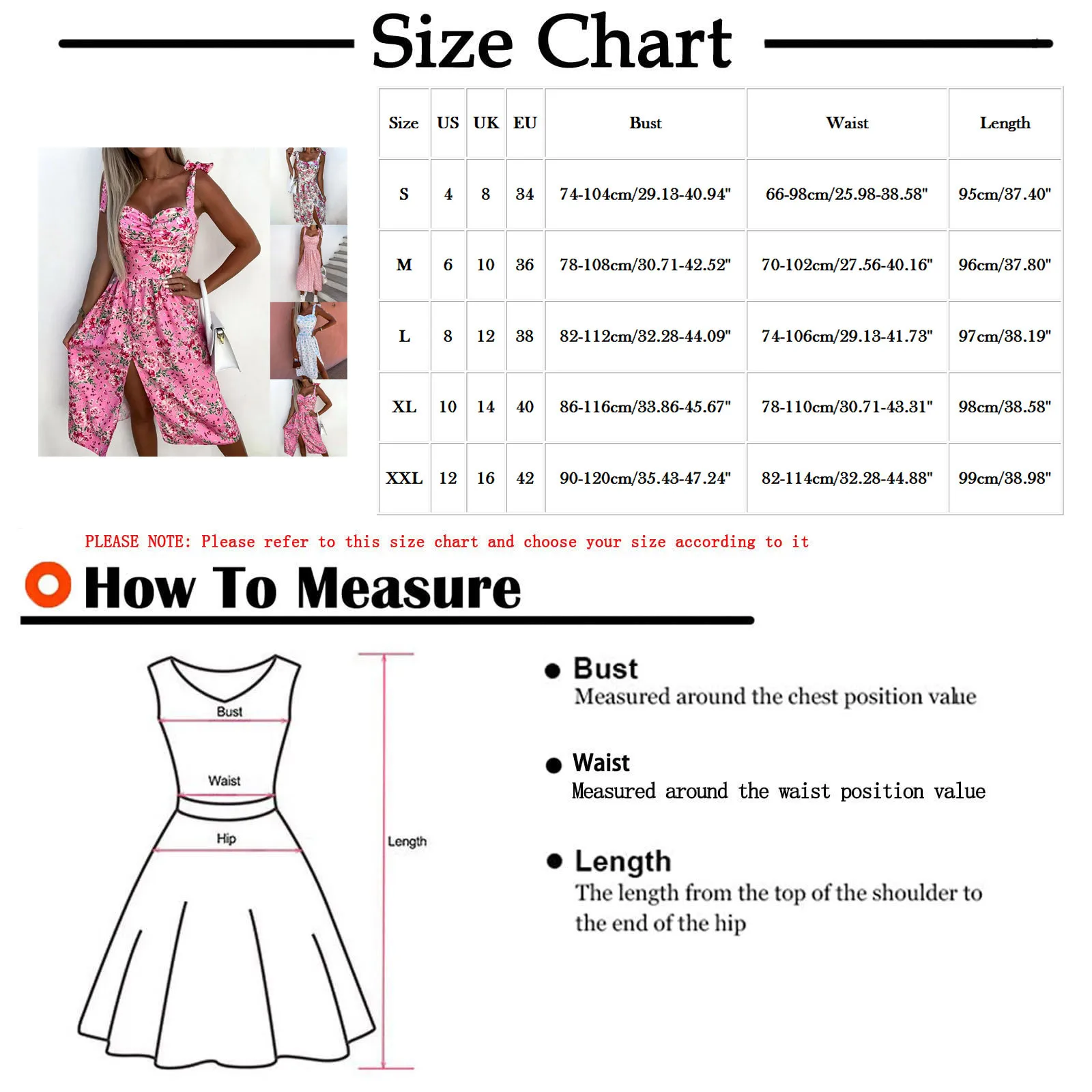 Size:S US:4 UK:8 EU:34 Bust:74-104cm/29.13-40.94” Waist:66-98cm/25.98-38.58” Length:95cm/37.40”