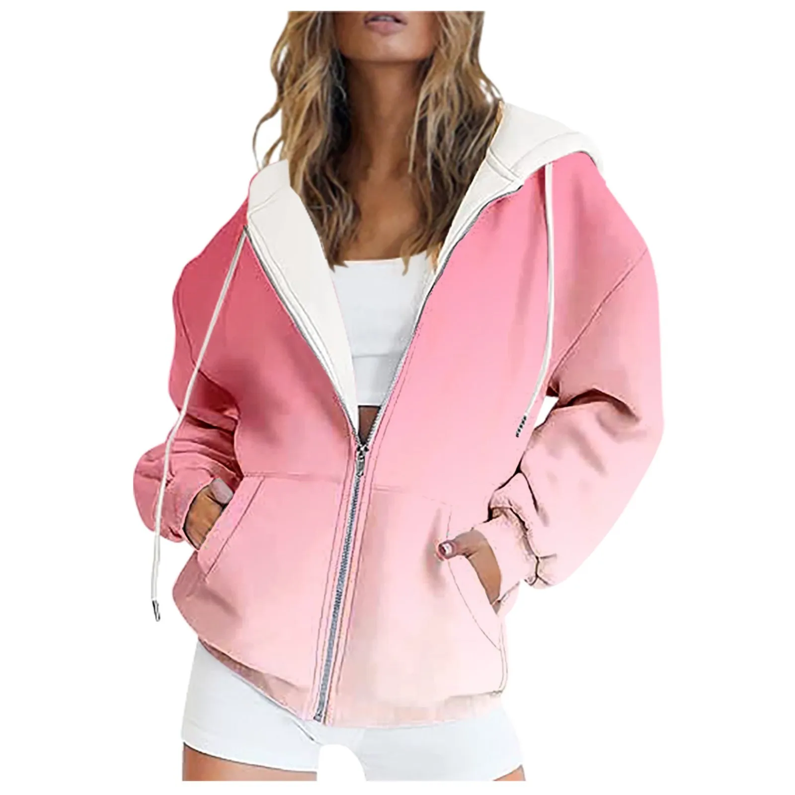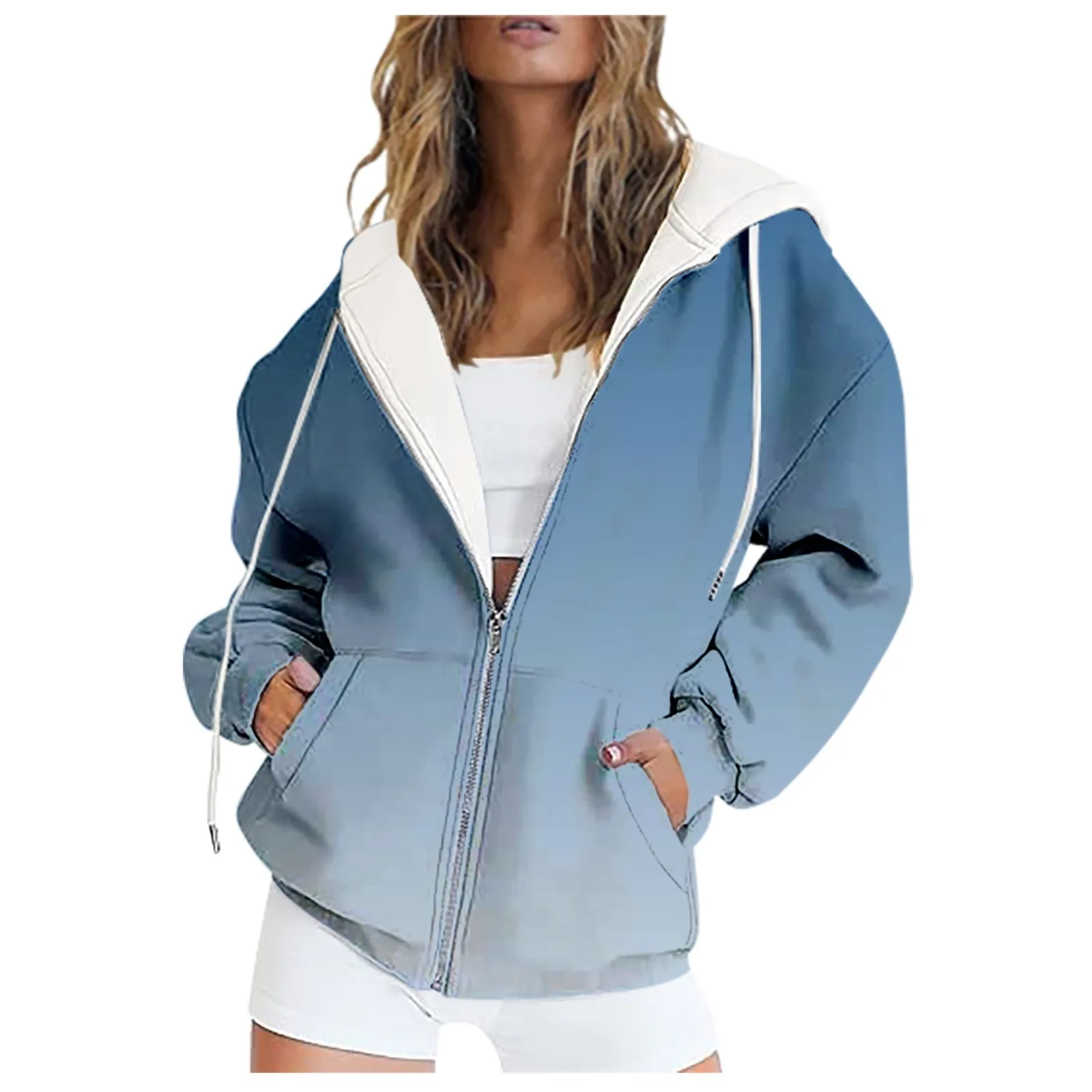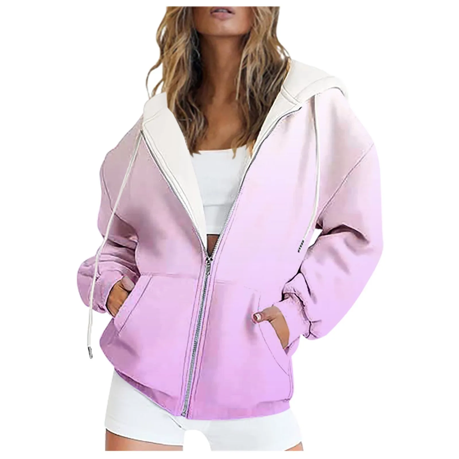 Gradient Print Hoodie: Women’s Loose Long Sleeve Top