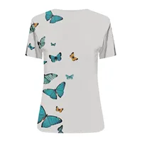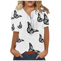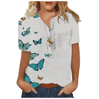 Women Summer Floral Pattern Button Blouse Short Sleeve Comfy Dressy Tshirts