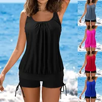 .Women Tankini top padding Streamlined tailoring straps drawstring side bikini two piece swimsuits bathing suits