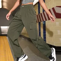2023 Cargo Pants Woman Relaxed Fit Baggy Clothes Black Pants High Waist Zipper Slim Drawstring Waist With Pockets Loose Plus Size Womans Parachute Pant Green Cargo Joggers Pants