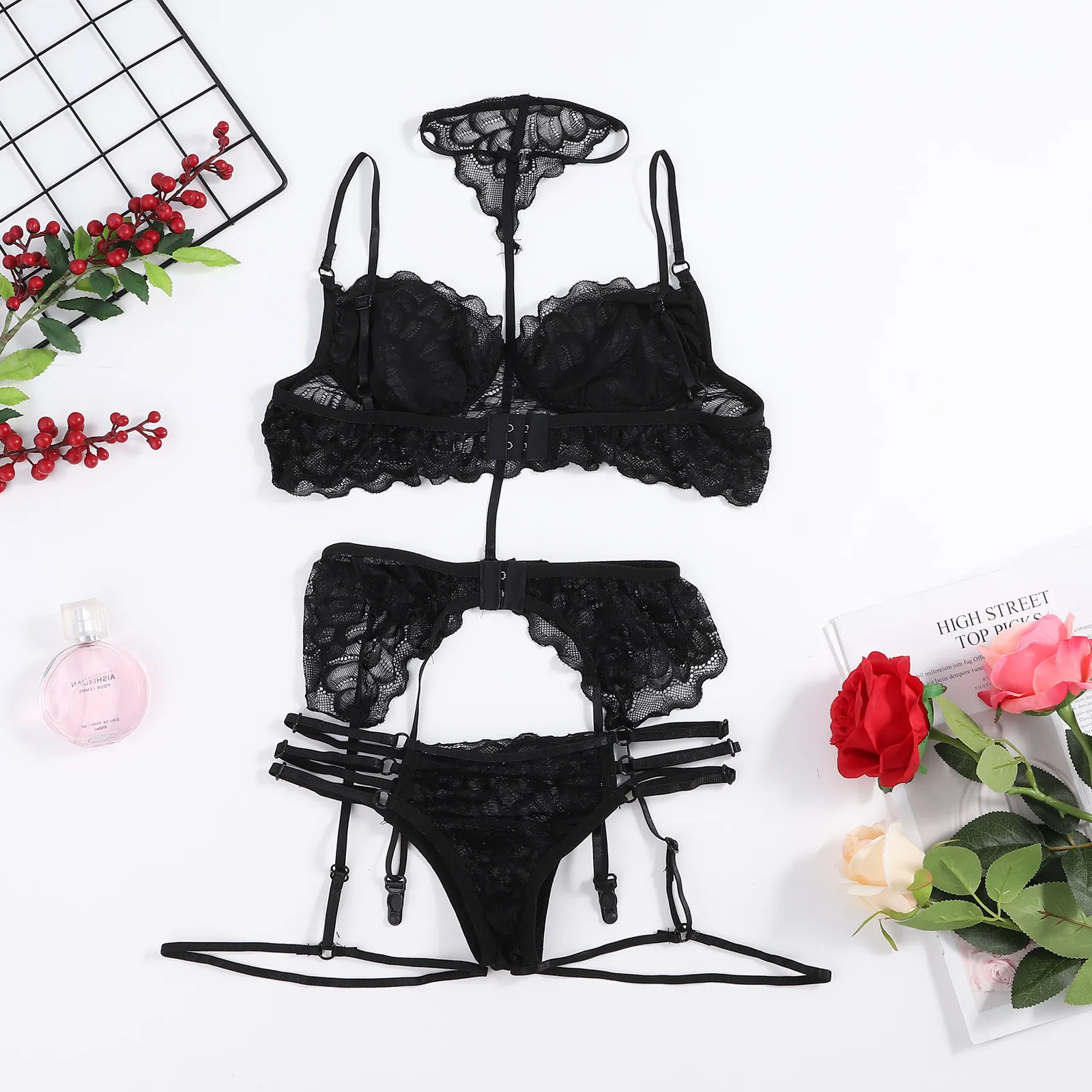 New Sexy Fashion Lace Lingerie Underwear Sleepwear Steel Ring Pajamas Garter