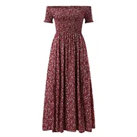 Women Plus Size Plus Off Shoulder Shirred Bodice Split Thigh Ditsy Floral Dress