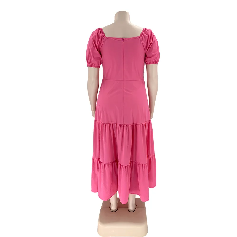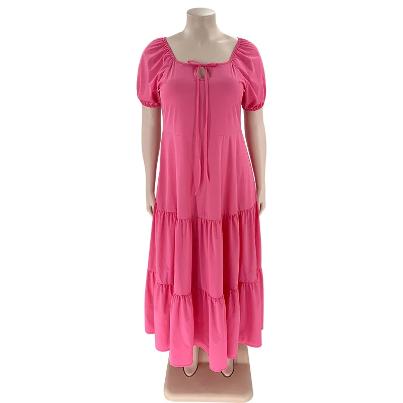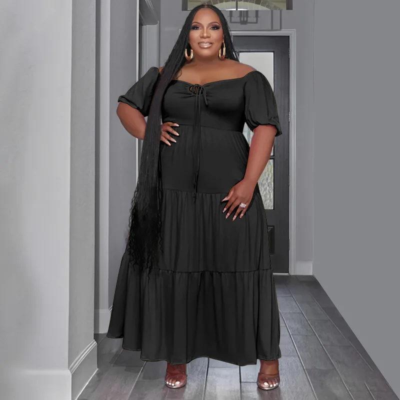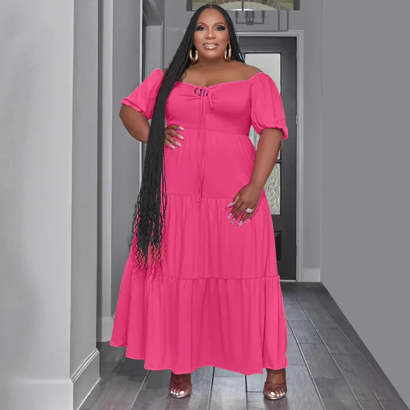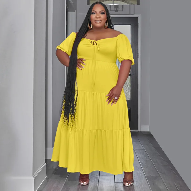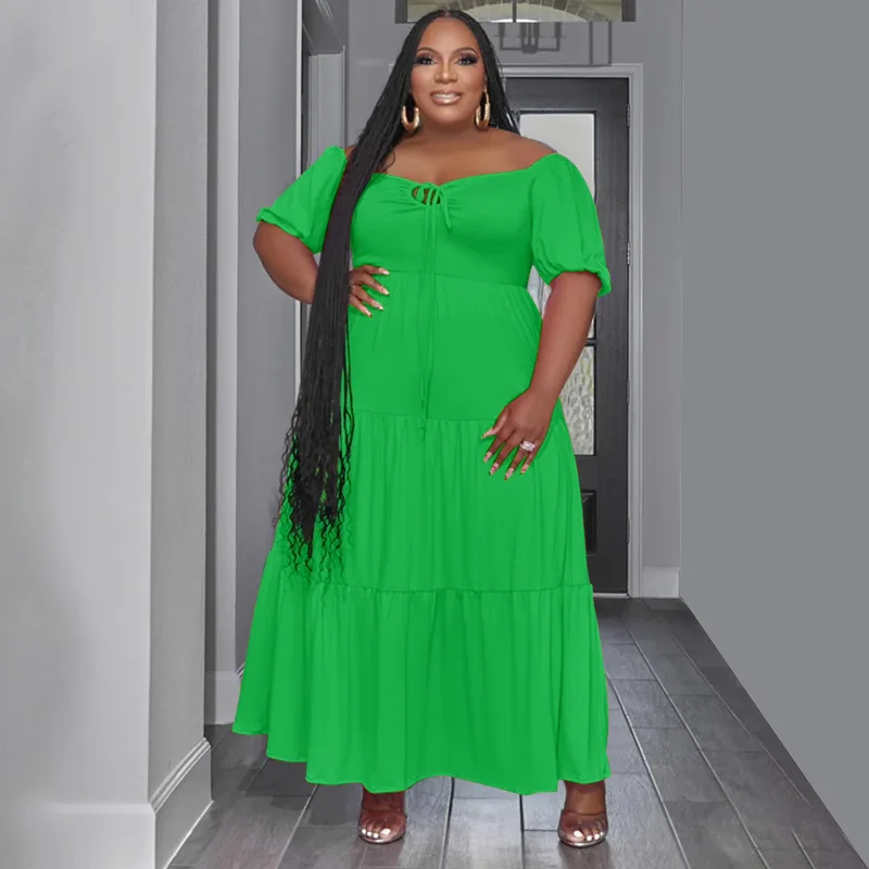 Plus Size Bandage High Waist Long Dress: Short Sleeve