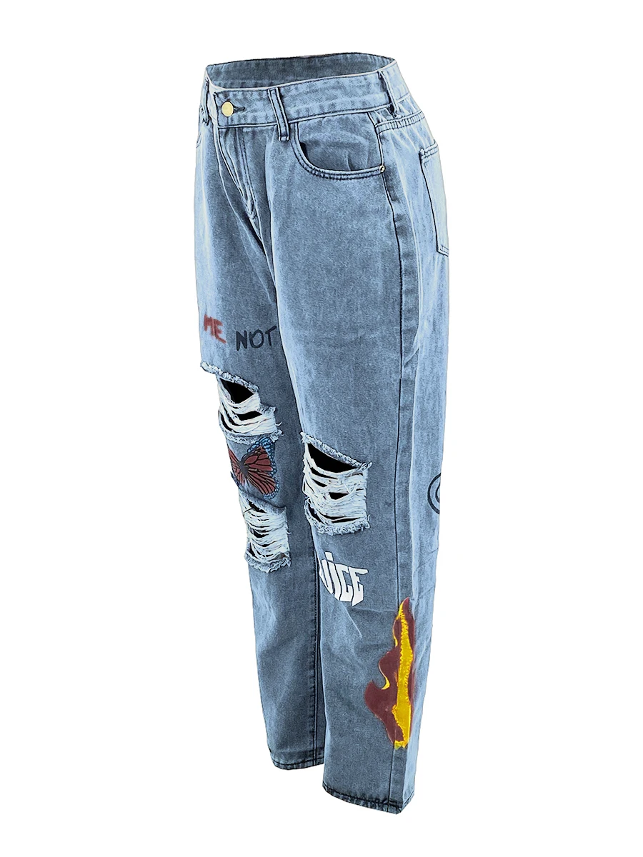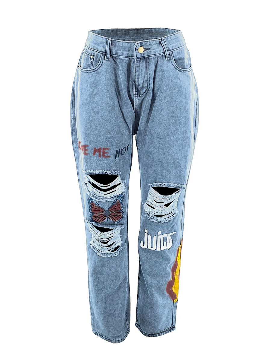 Plus Size High-Waist Print Stretchy Jeans – Streetwear Fashion
