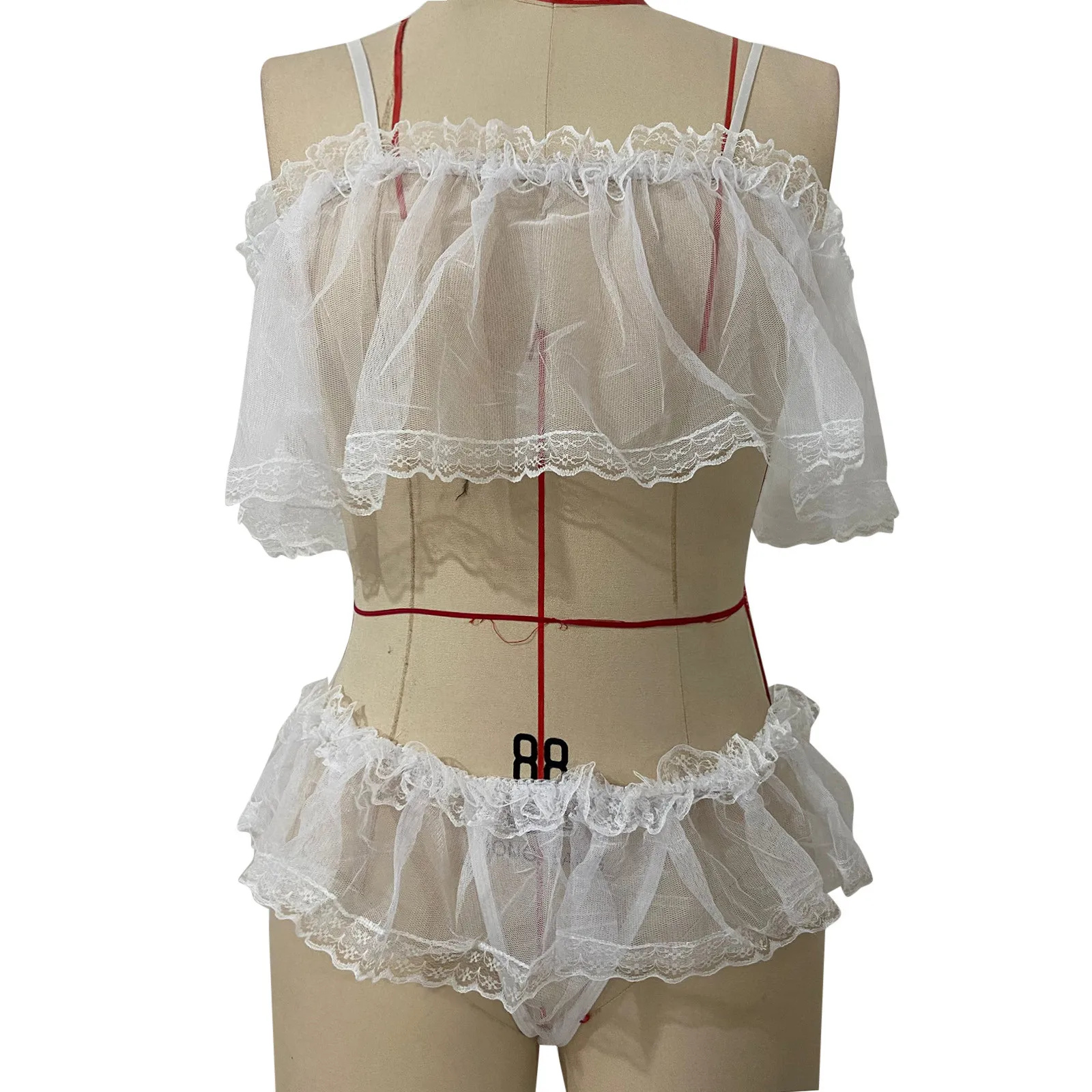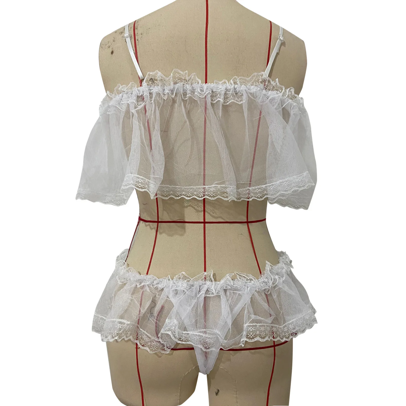 Women 2PC Sexy Babydoll Mesh Lingerie Sexy Fashion Sexy Underwear Suits Lingerie Underwear Sleepwear Pajamas 2pack Chain Linked Underwire Lace Lingerie Set