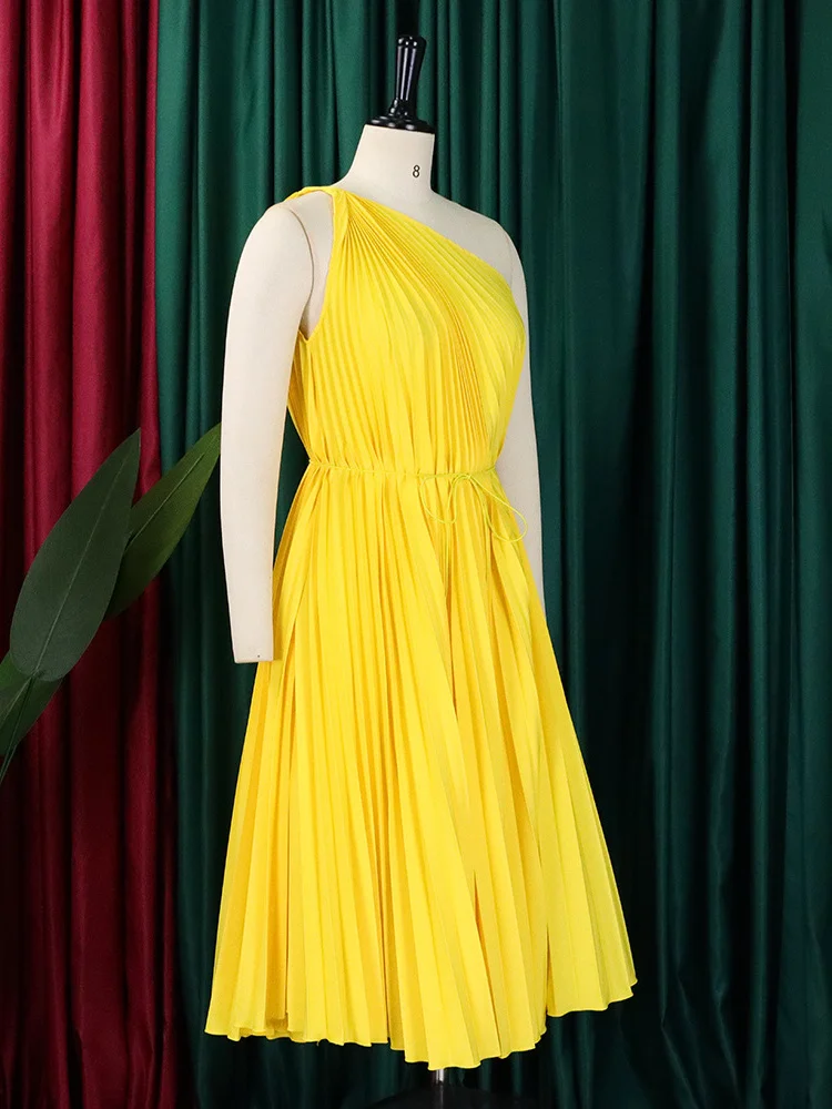 Single Sleeve Midi Dress: Elegant Party Birthday Wear