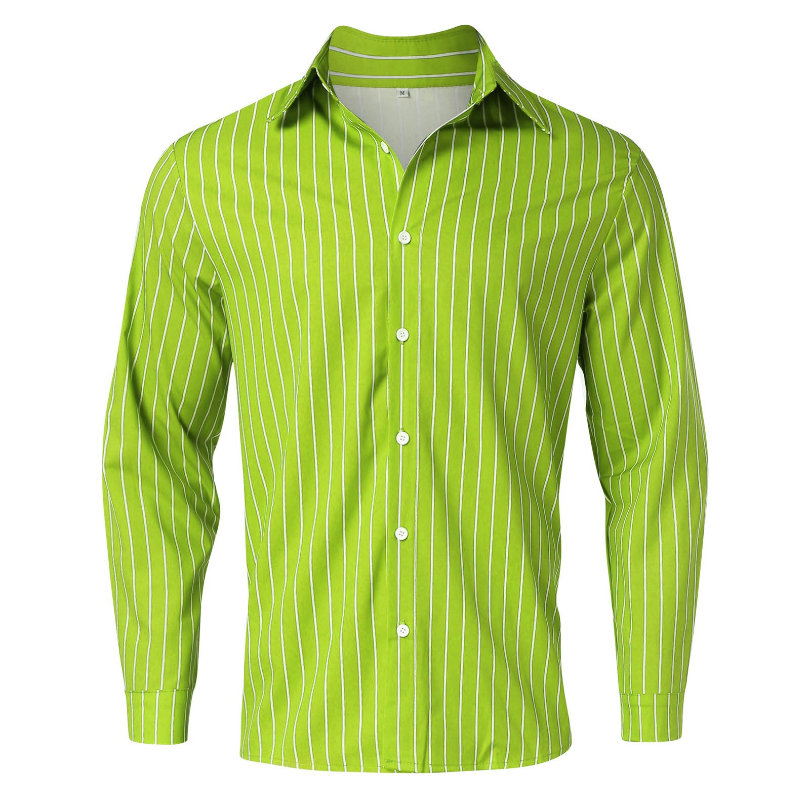 Spring And Autumn Men’s Striped Lapel Cardigan Striped Long Sleeve Shirt