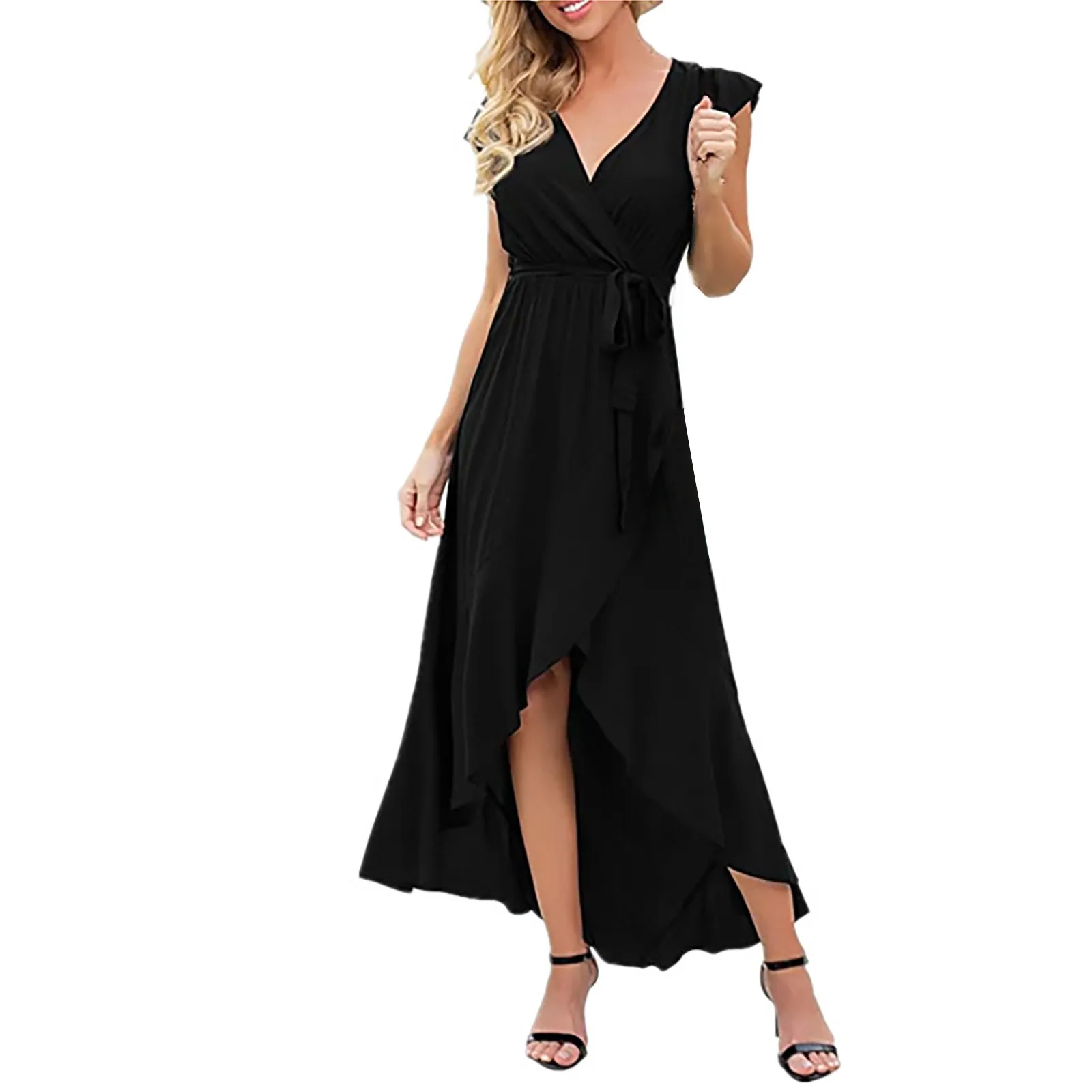 • Features: Floor-length summer maxi dress, you will look stylish and elegant in it. V neckline, ruffled cap sleeves, and elasticated waistband.