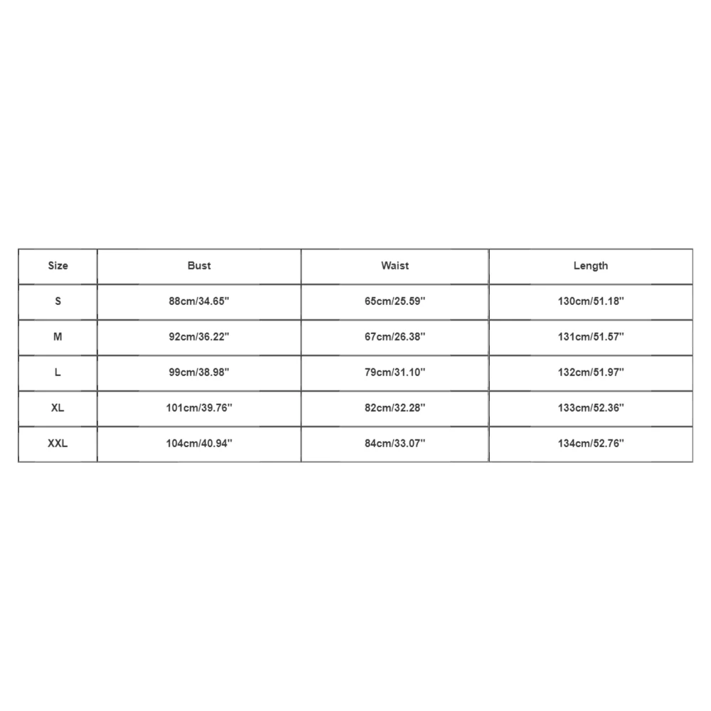 Size:XXL Bust:104cm/40.94” Waist:84cm/33.07” Length:134cm/52.76”