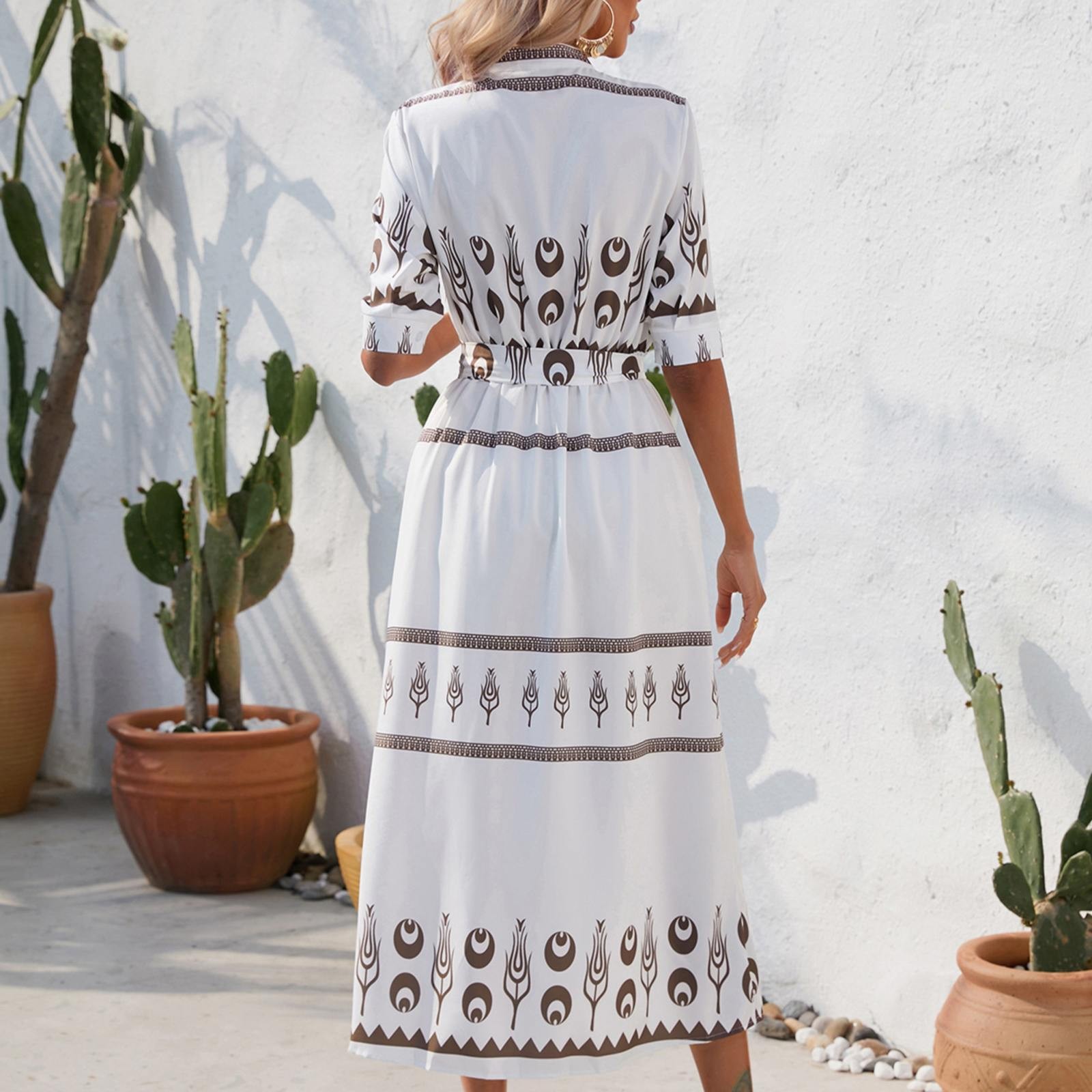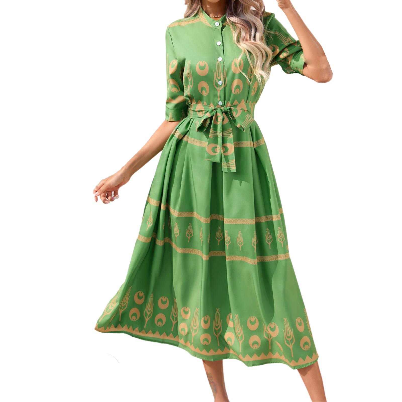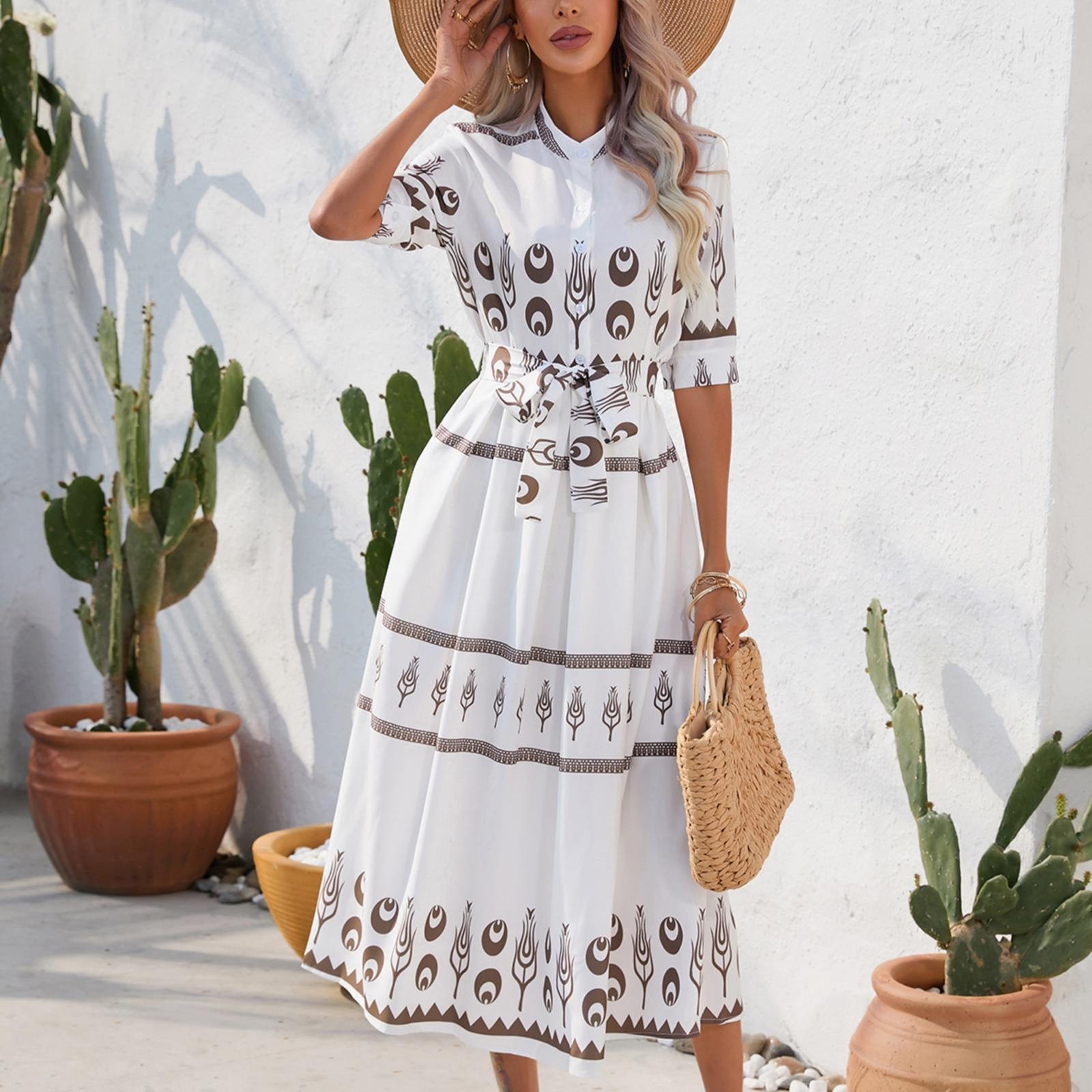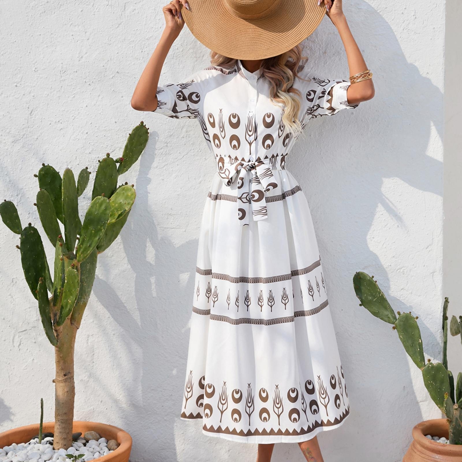 Summer Ethnic Style Print Five Part Sleeve Dress For Woman