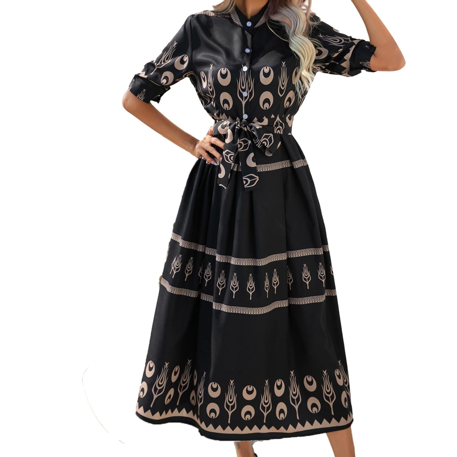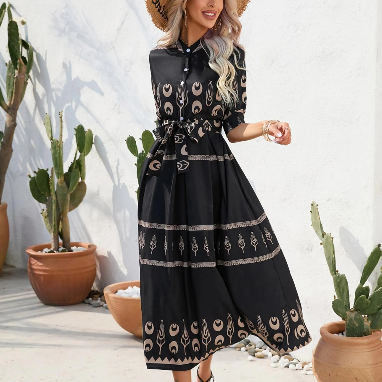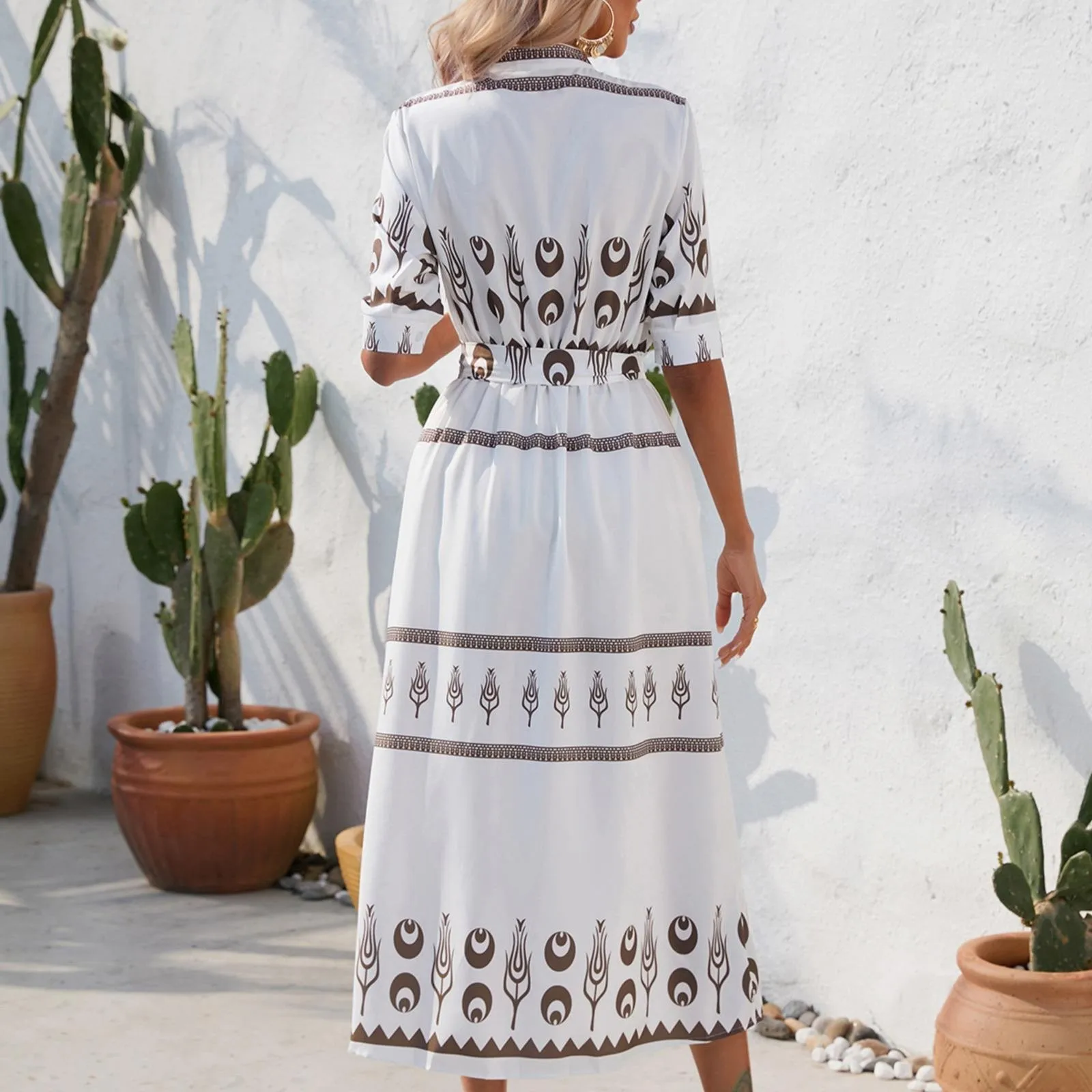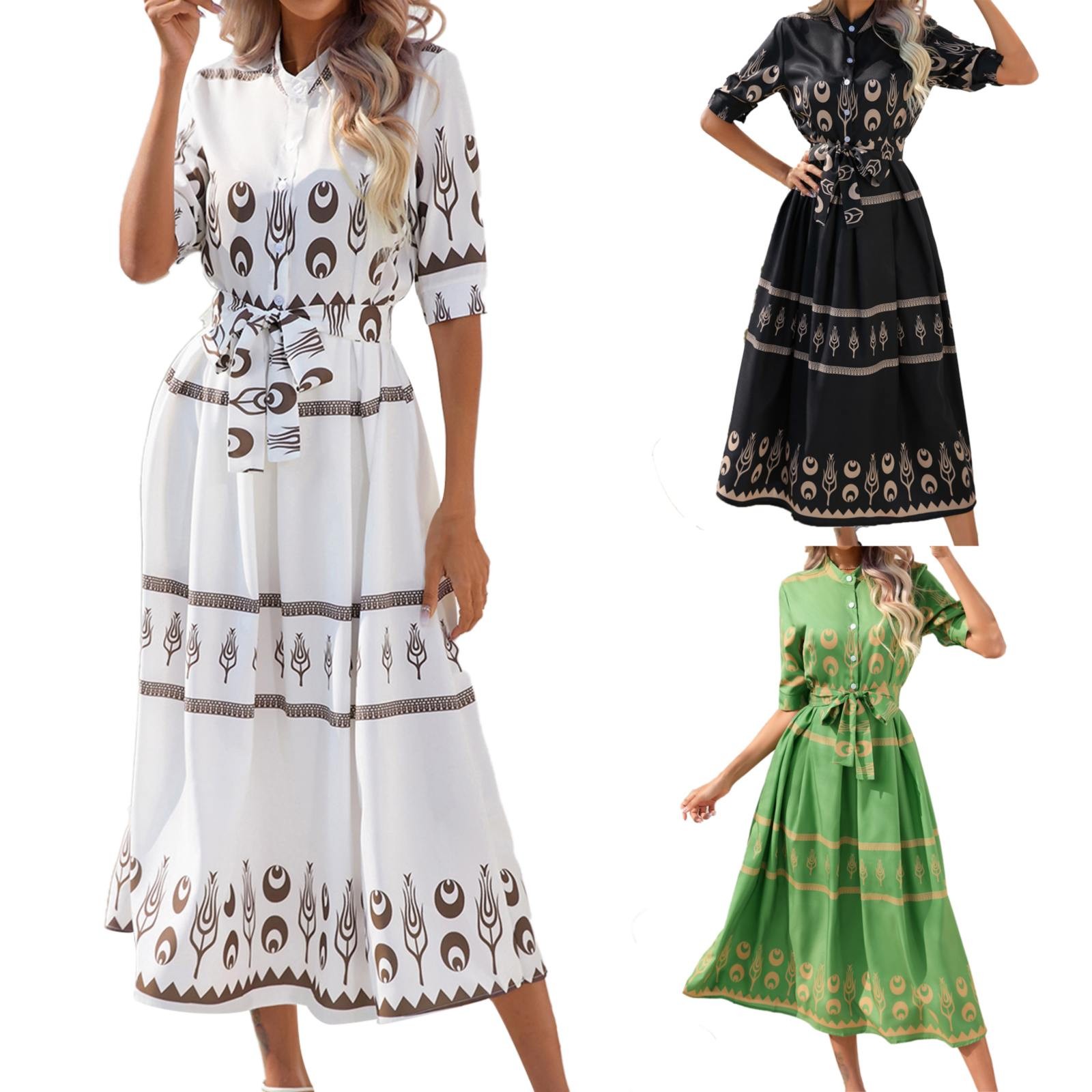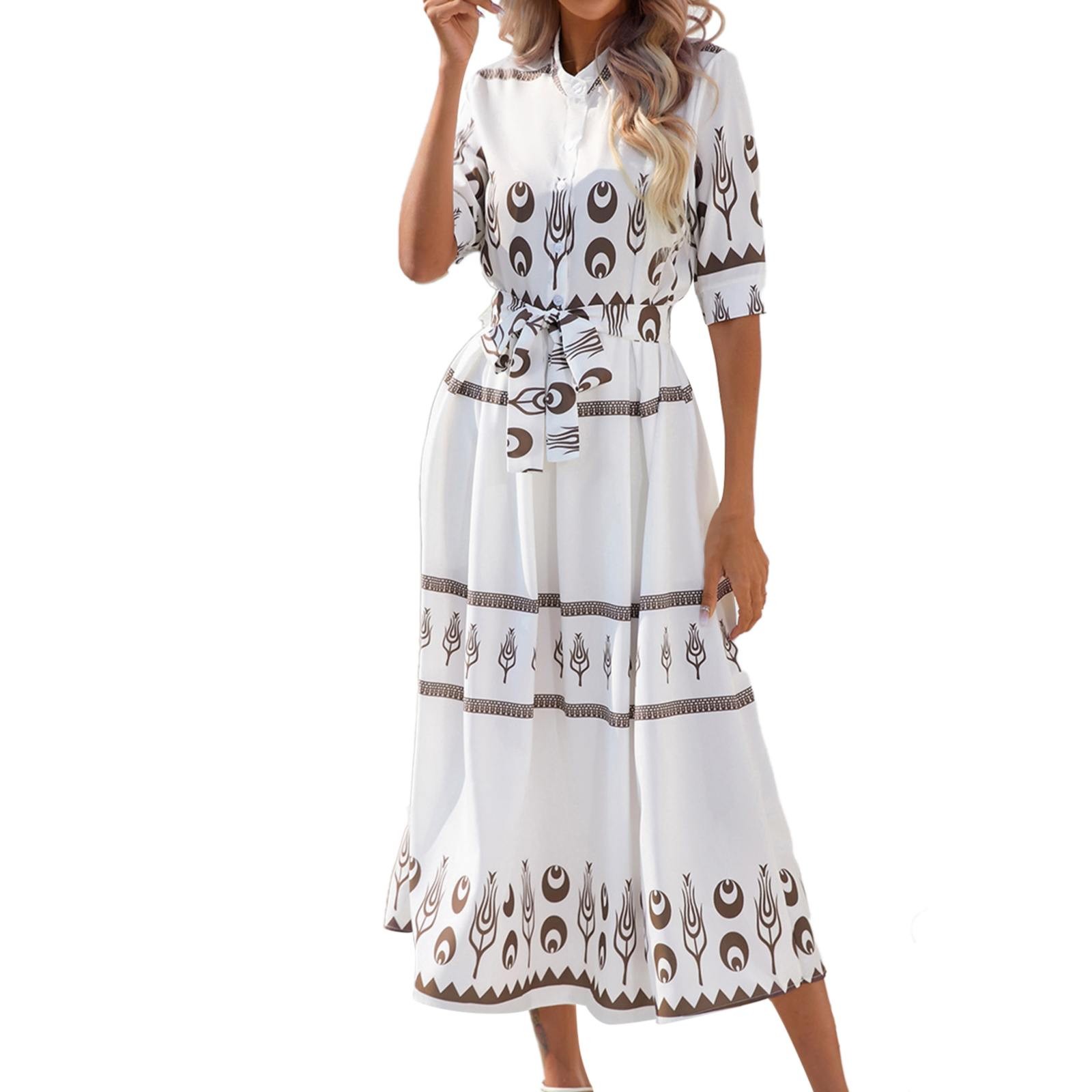 Summer Ethnic Style Print Five Part Sleeve Dress For Woman