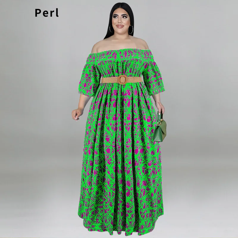 Off The Shoulder Plus Size Long Dress: Casual Boho Holiday Outfit